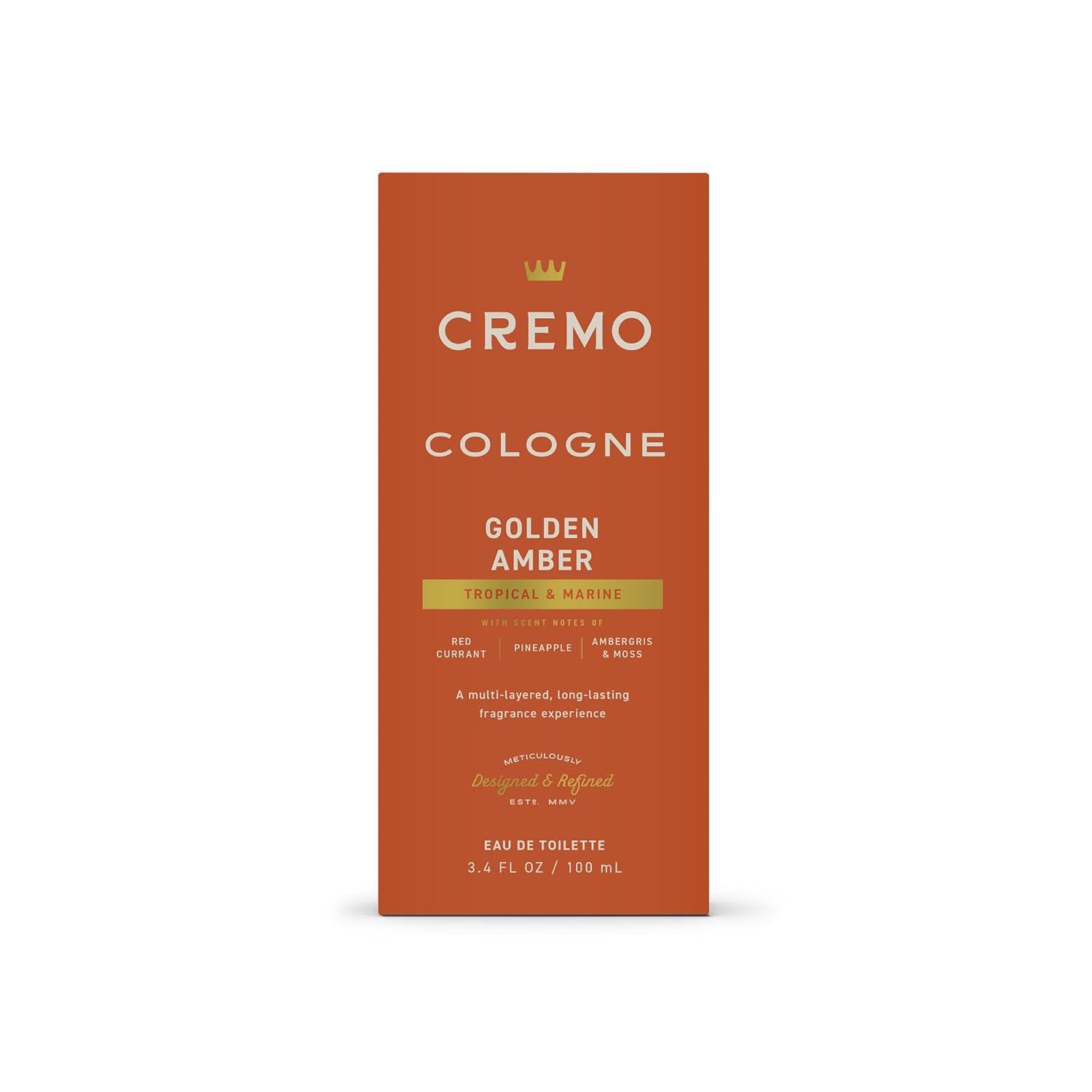 Cremo Cologne For Men – Italian Bergamot Mens Cologne Spray, A Combination of Italian Bergamot, Neroli Blossom, and Fresh Vetiver, Multi-Layered Signature Men’s Fragrances, 3.4 Fl Oz(Golden Amber)