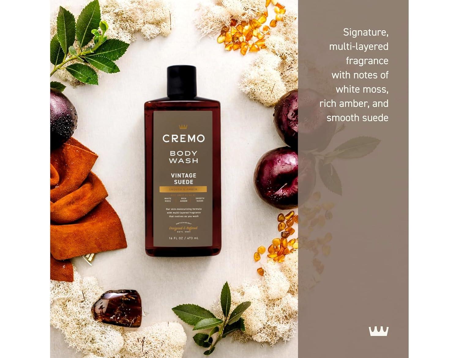 Cremo Rich-Lathering Vintage Suede Body Wash, A Vintage Suede with Notes of White Moss and Rich Amber, 16 Fl Oz (Pack of 2)